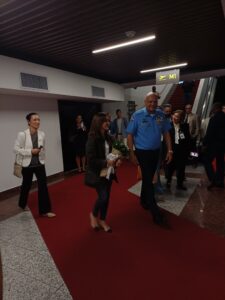 La diplomática fue recibida en la terminal aérea por una delegación oficial encabezada por el director del Cuerpo Especializado de Seguridad Aeroportuaria y de la Aviación Civil (CESAC), general Emmanuel Souffront Tamayo, y por la encargada de Negocios de la embajada estadounidense en Santo Domingo, Patria Aguieras, junto a otros funcionarios consulares y miembros del protocolo diplomático.