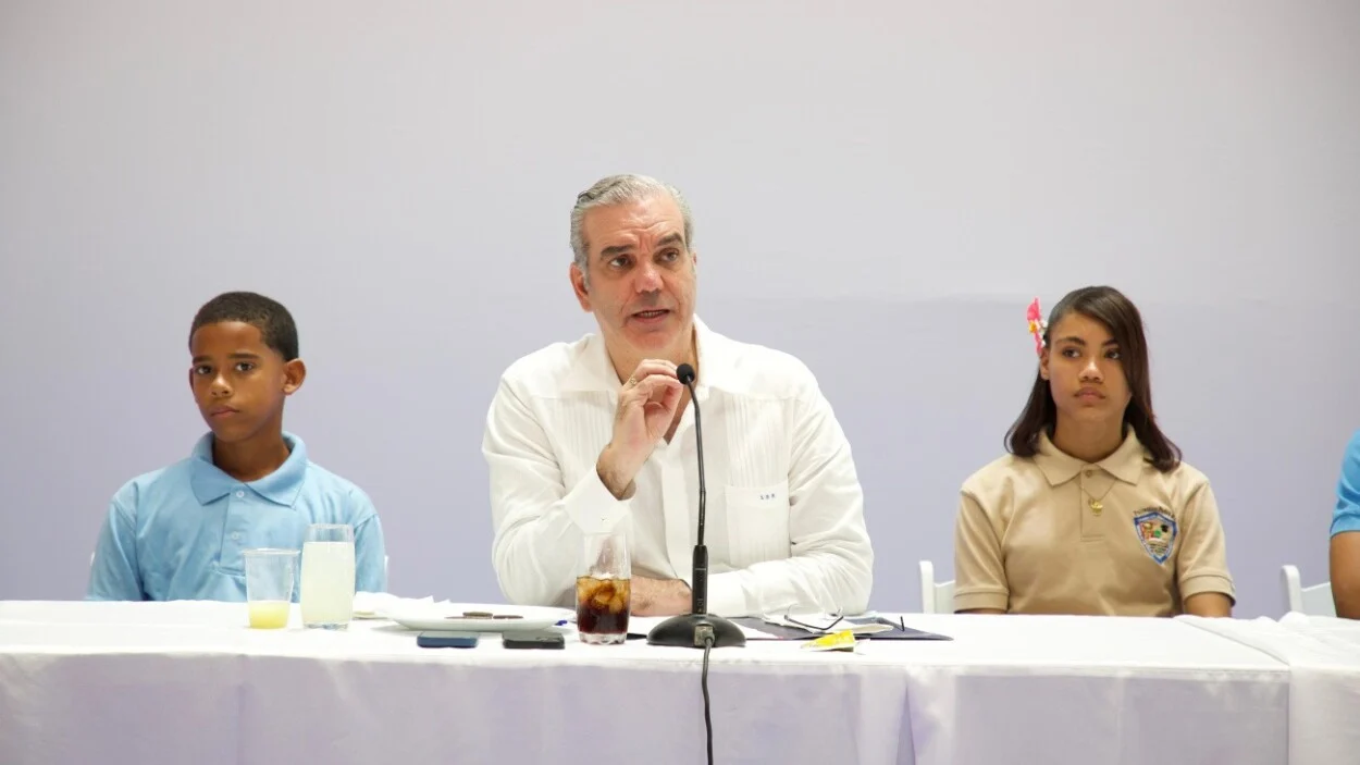 El presidente Abinader resaltó que su gestión está centrada en mejorar la infraestructura escolar mediante el equipamiento de laboratorios, la construcción de comedores y techados en los centros educativos, buscando elevar la calidad de la educación pública.
