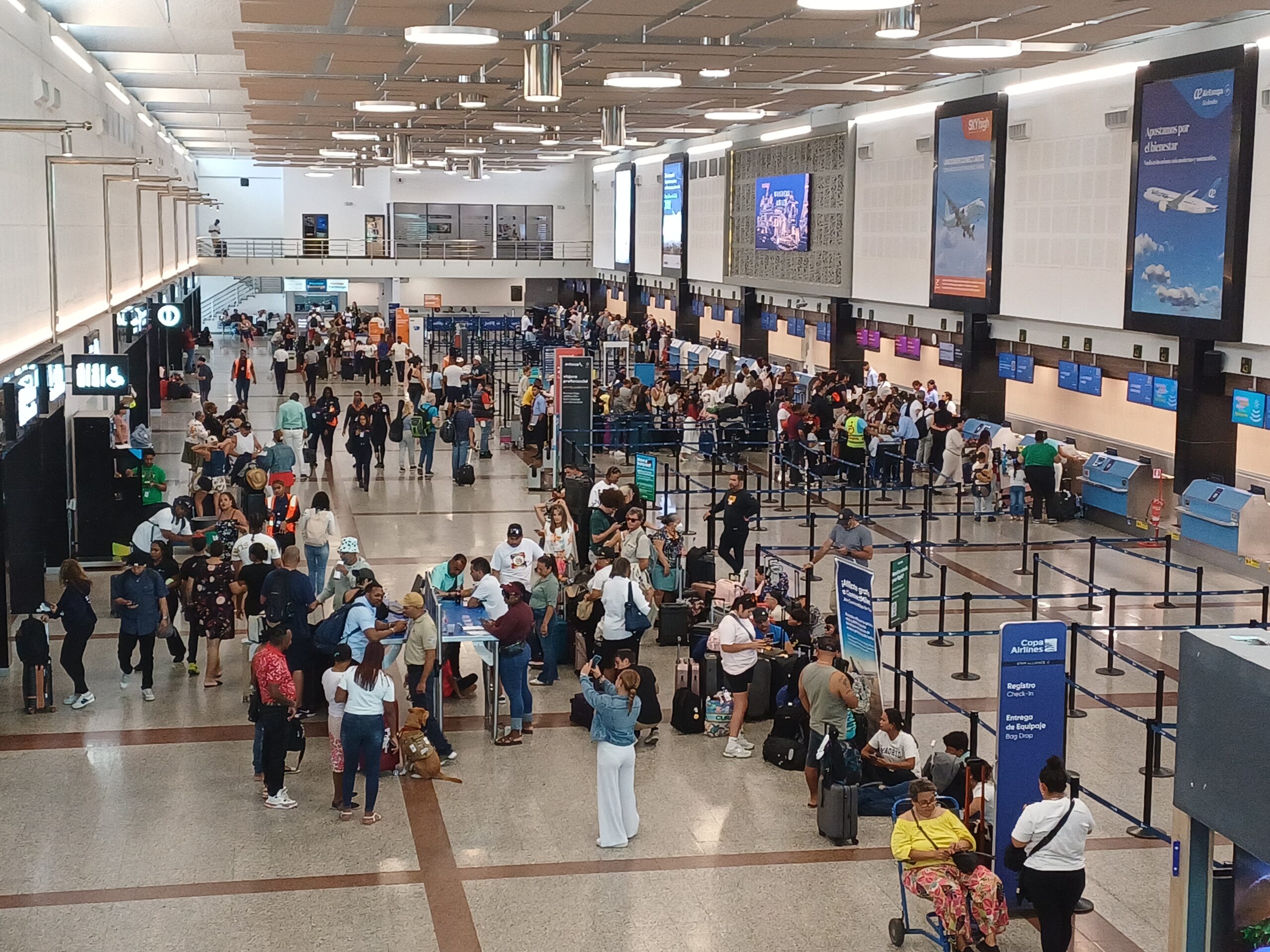 Tras ser informados de la suspensión de sus vuelos, numerosos pasajeros se dirigieron a los mostradores de las aerolíneas ubicados en el segundo nivel del aeropuerto para intentar reprogramar sus viajes o gestionar nuevas reservaciones.